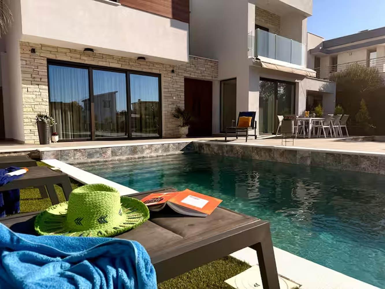 Број на луѓе кои можат да престојуваат во вилата: 9 • Спални соби: 4 • Бањи: 5 • приватен базен • Клима уред
